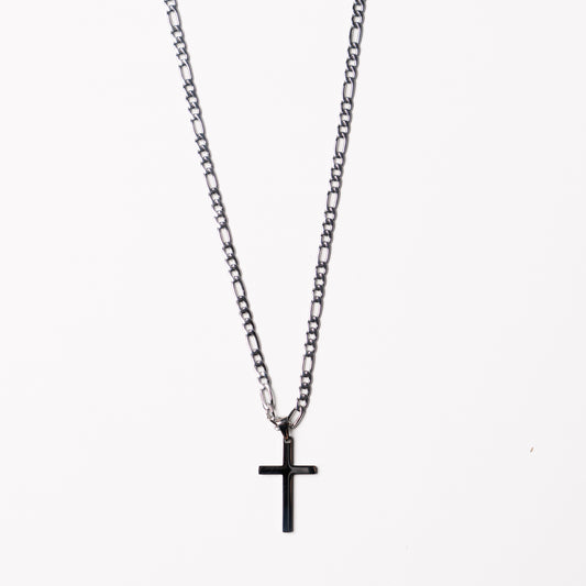 Steel And Black Cross Necklace