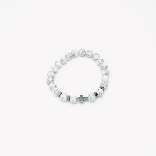 Natural Beaded Stainless Steel Cross Bracelet