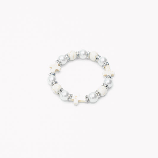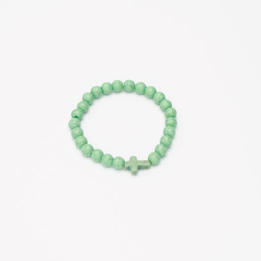 Natural Beaded Cross Charm Bracelet