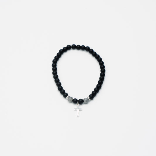 Natural Beaded Onyx Cross
